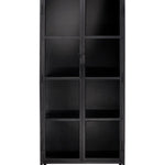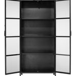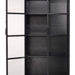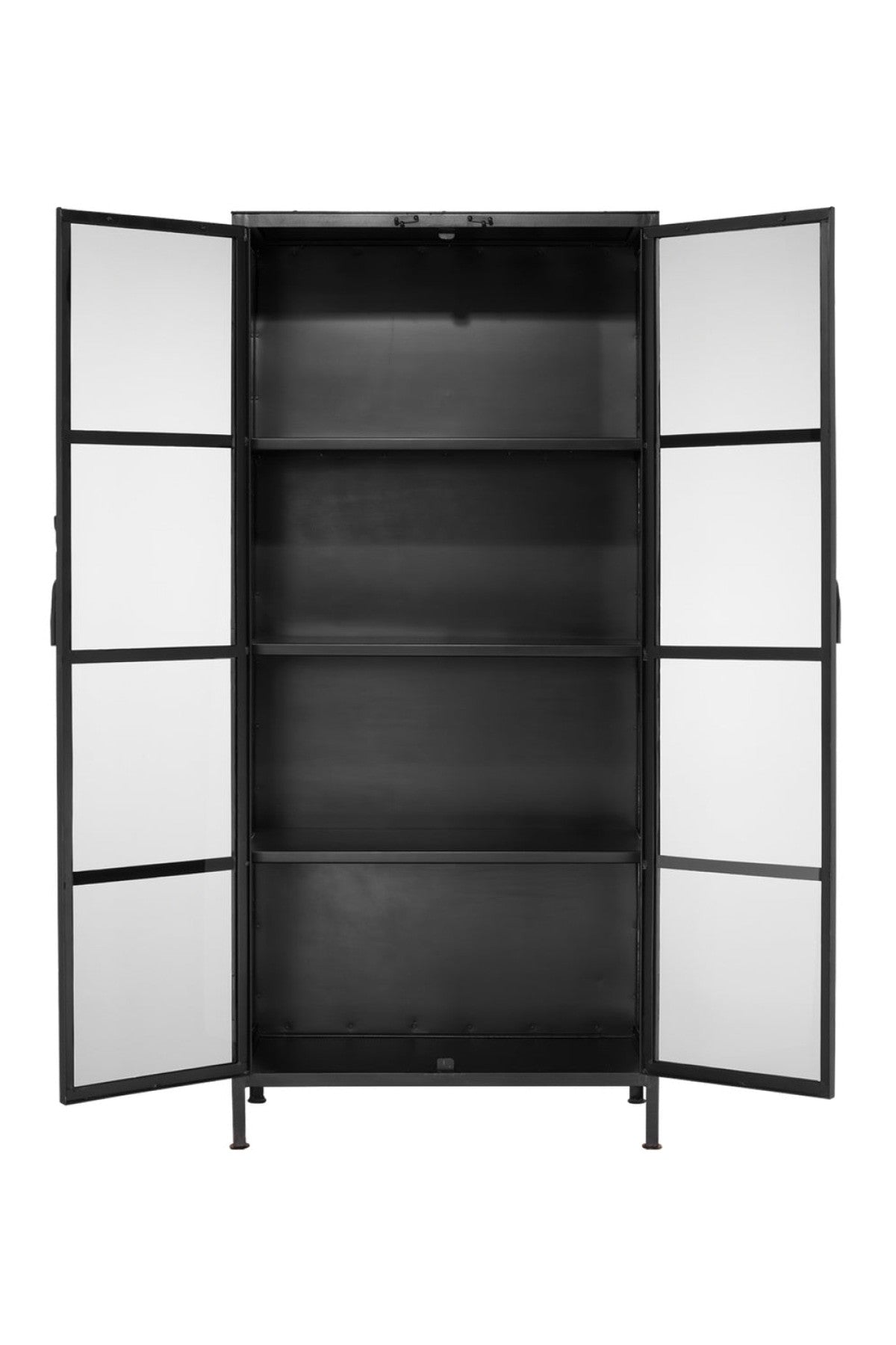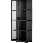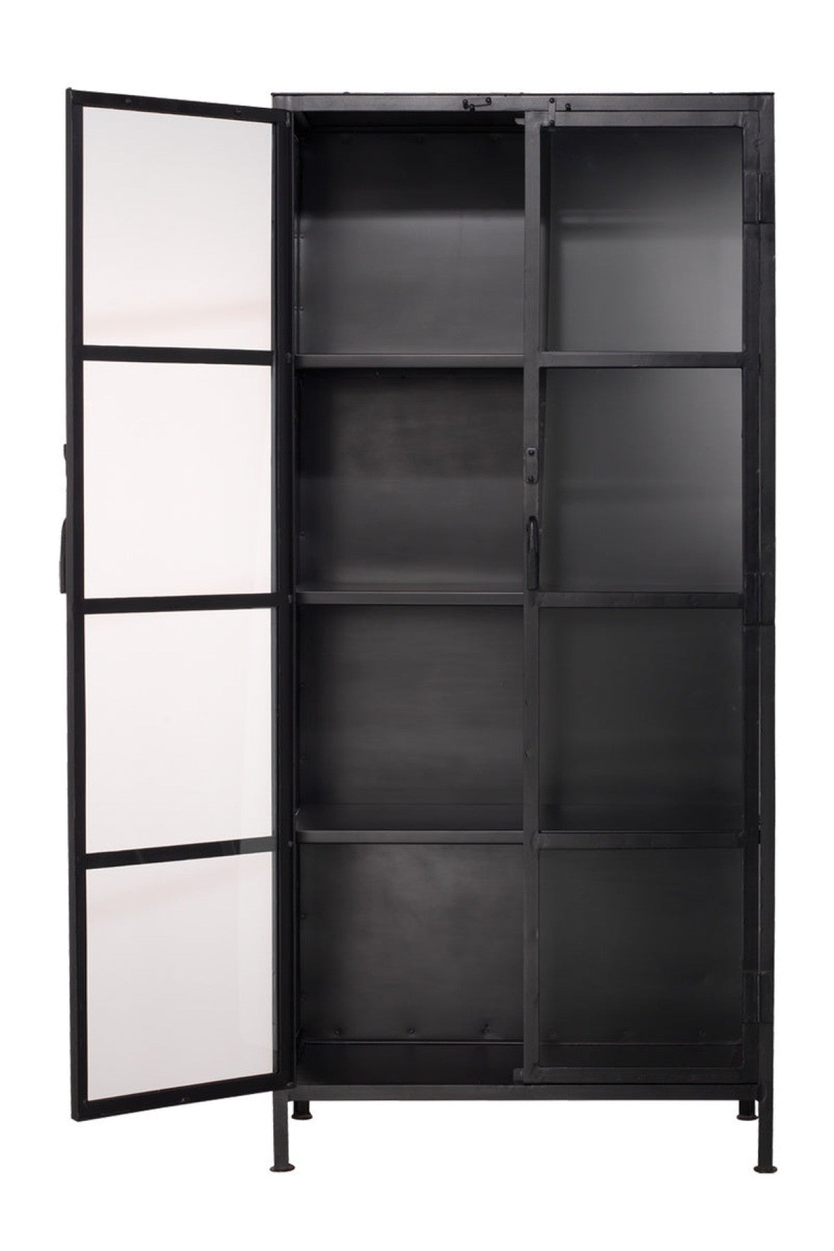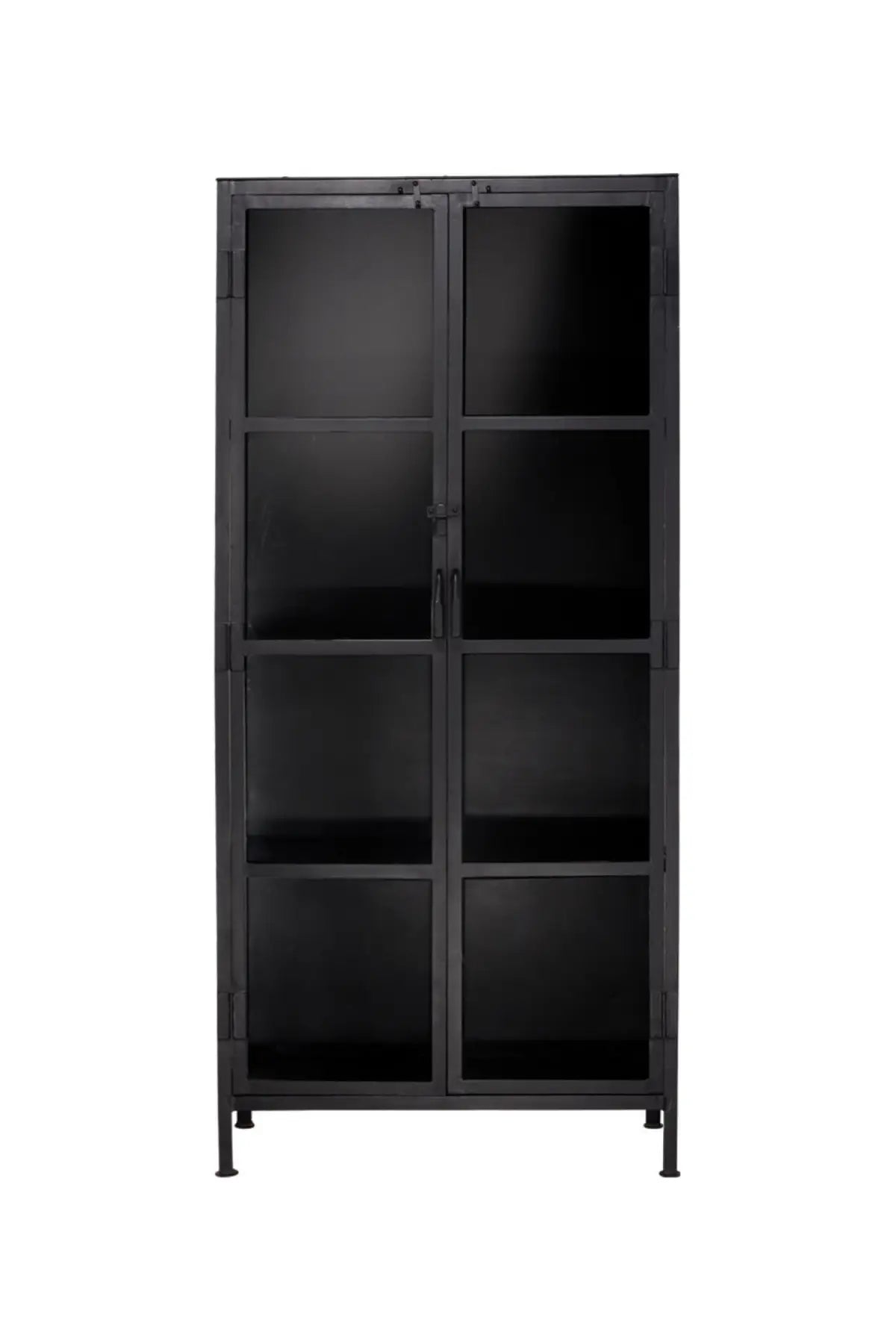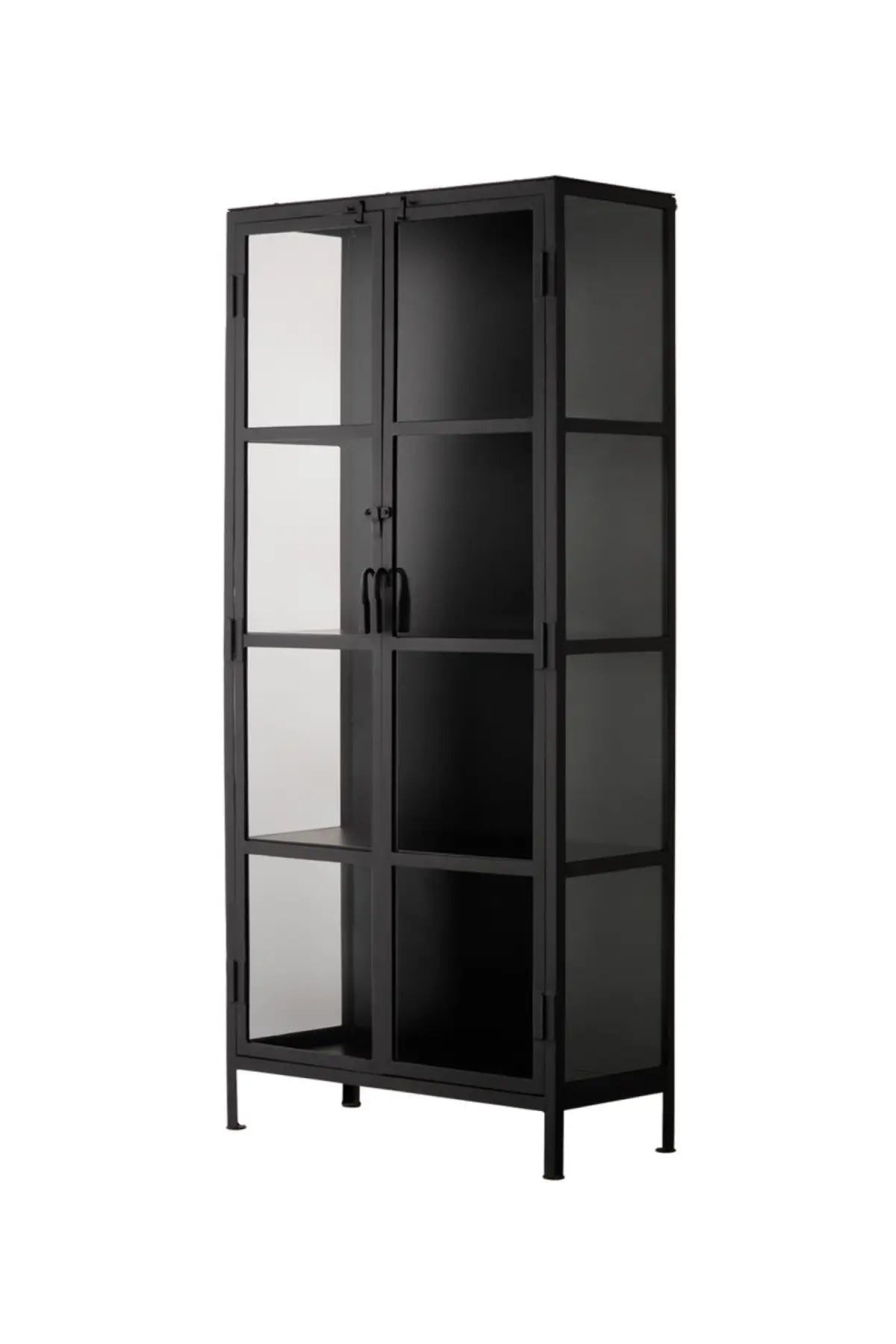Meet the Union Tall Curio Cabinet. Glass panes are encased in simple black metal to create a minimalistic cabinet perfect for storage or display.