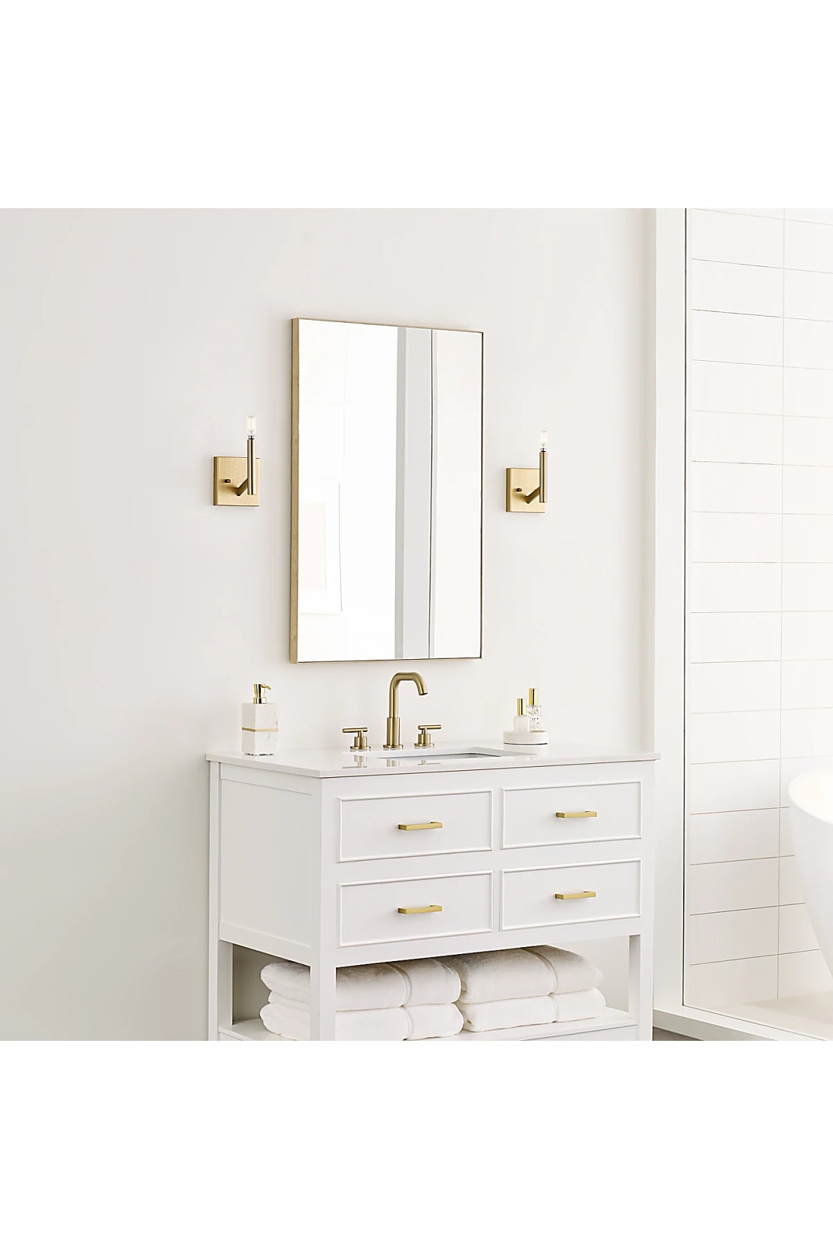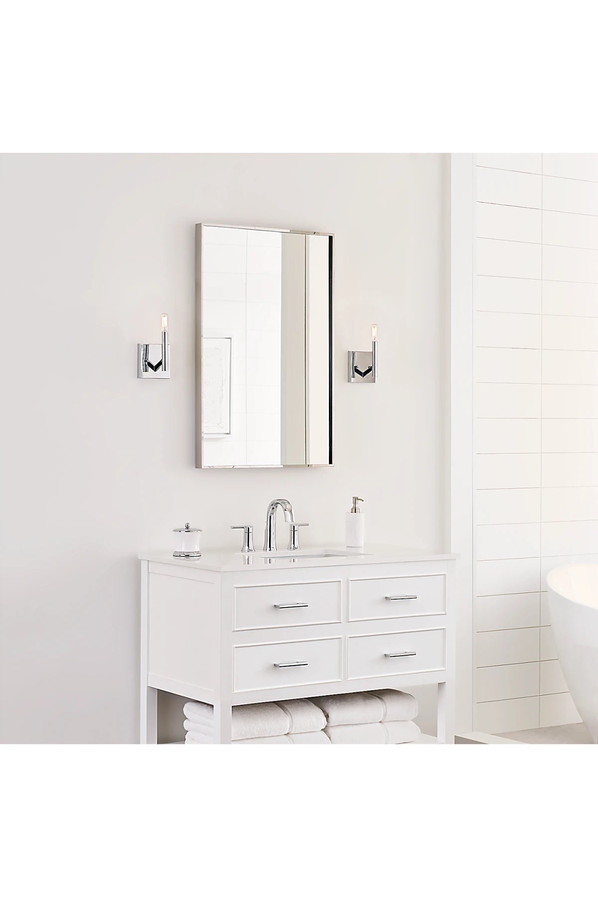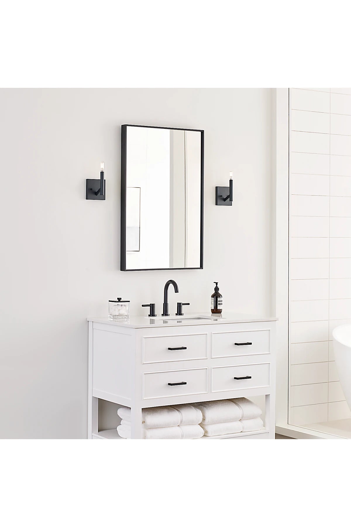 The Vector Bath Sconce delivers architectural precision to your bathroom vanity with its geometric design and clean lines. Available in three distinct finishes, this fixture adapts seamlessly to contemporary, transitional, or modern interiors. The sconce's directional light distribution provides focused illumination ideal for grooming tasks while maintaining visual interest above the sink. Engineered for durability and style, it transforms functional lighting into a design statement. Bulb(s) not included.