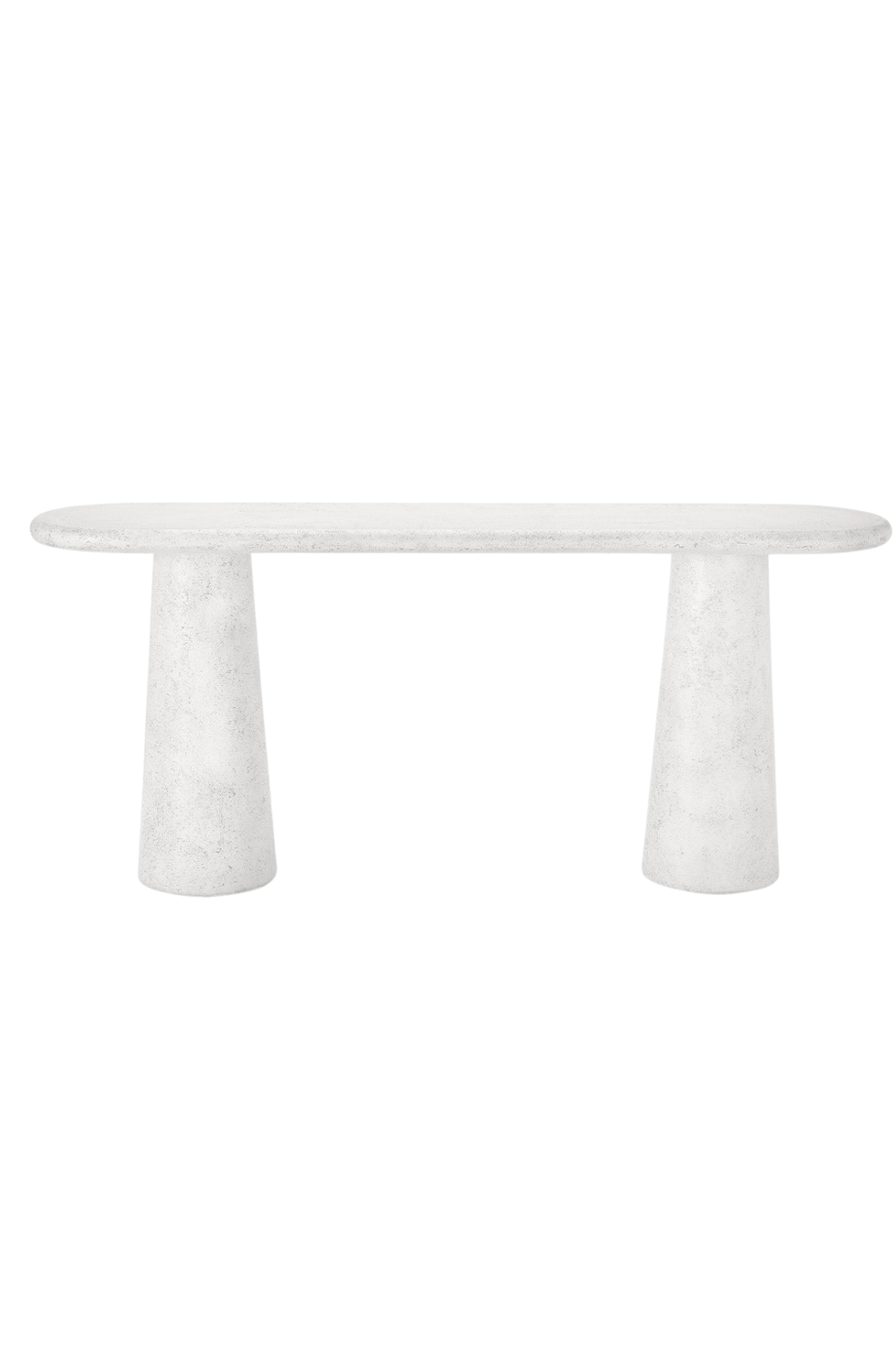Meet the Vernon Console. Featuring robust, rounded legs and a rectangular oval top, this modern concrete console combines heft with antiqued charm, offering a striking balance of contemporary design and timeless appeal.