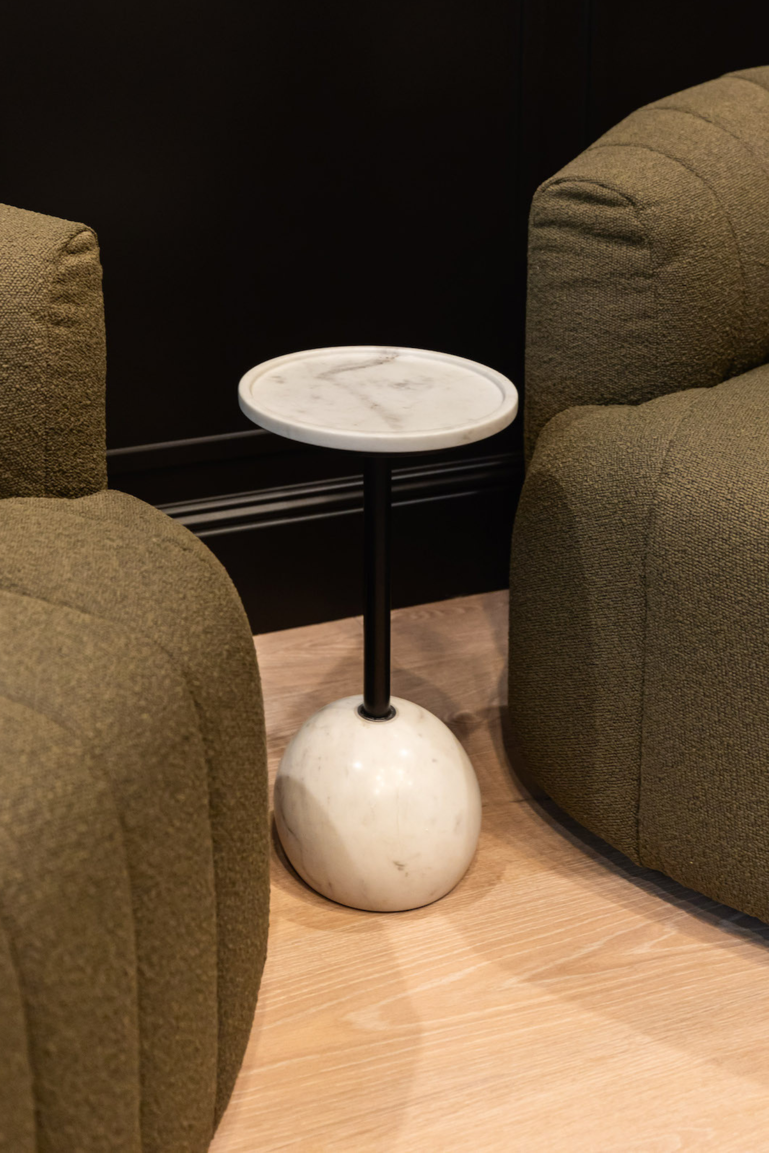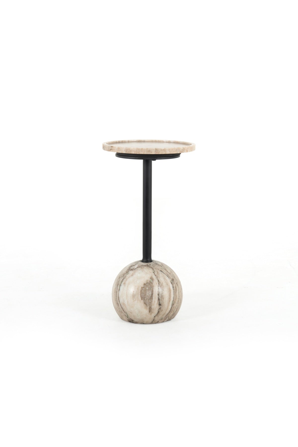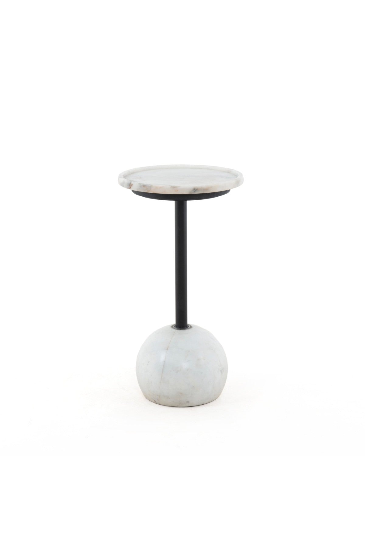 Meet the Viola Accent Table. Layer in sophistication anywhere with the Viola Accent Table. A dramatically shaped base of polished white marble supports slim iron piping and rounded tray-style tabletop. The perfect place to perch a drink or favorite book.