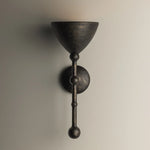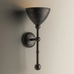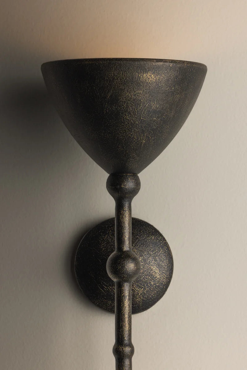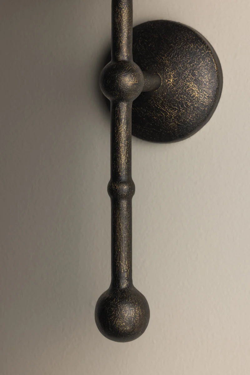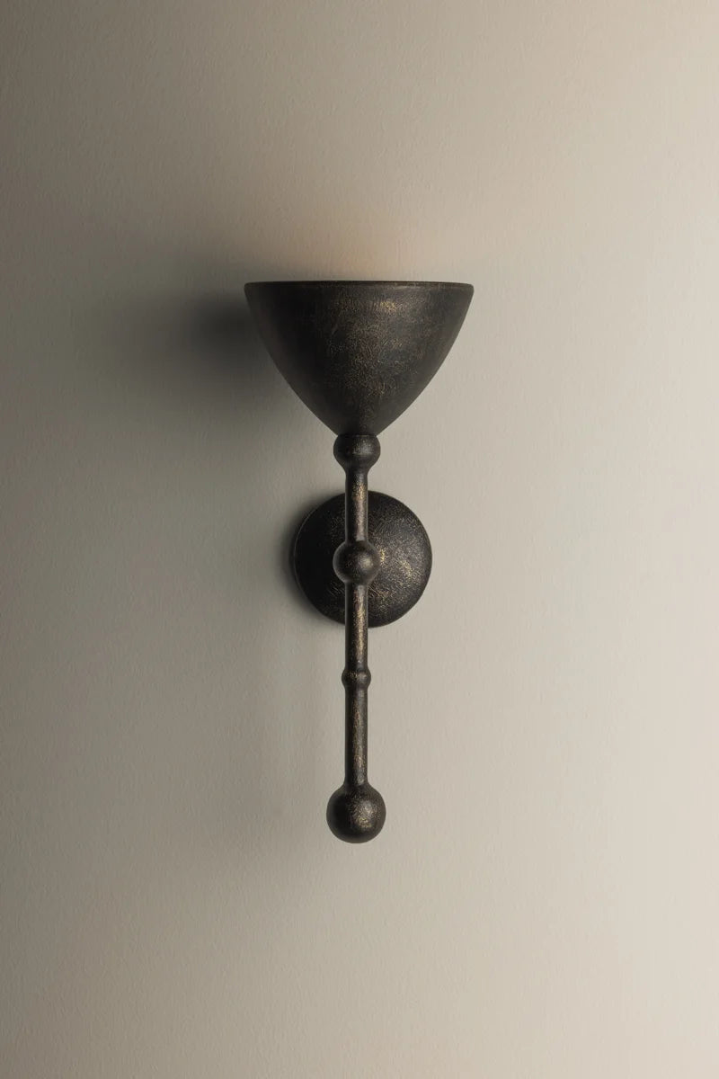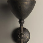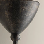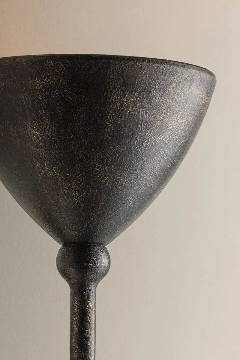 Inspired by the work of renowned Italian artist Alberto Giacometti, the Vishal family makes an impact with its sculptural framework and heavily patinated finish. The shades resemble dishes filled with light while the spindly arms are accented by ornamental circular motifs. The allover Black Patina Gold finish continues the art historical reference, adding an organic, hand-applied, and weathered effect. Bulb(s) not included.