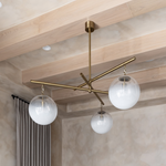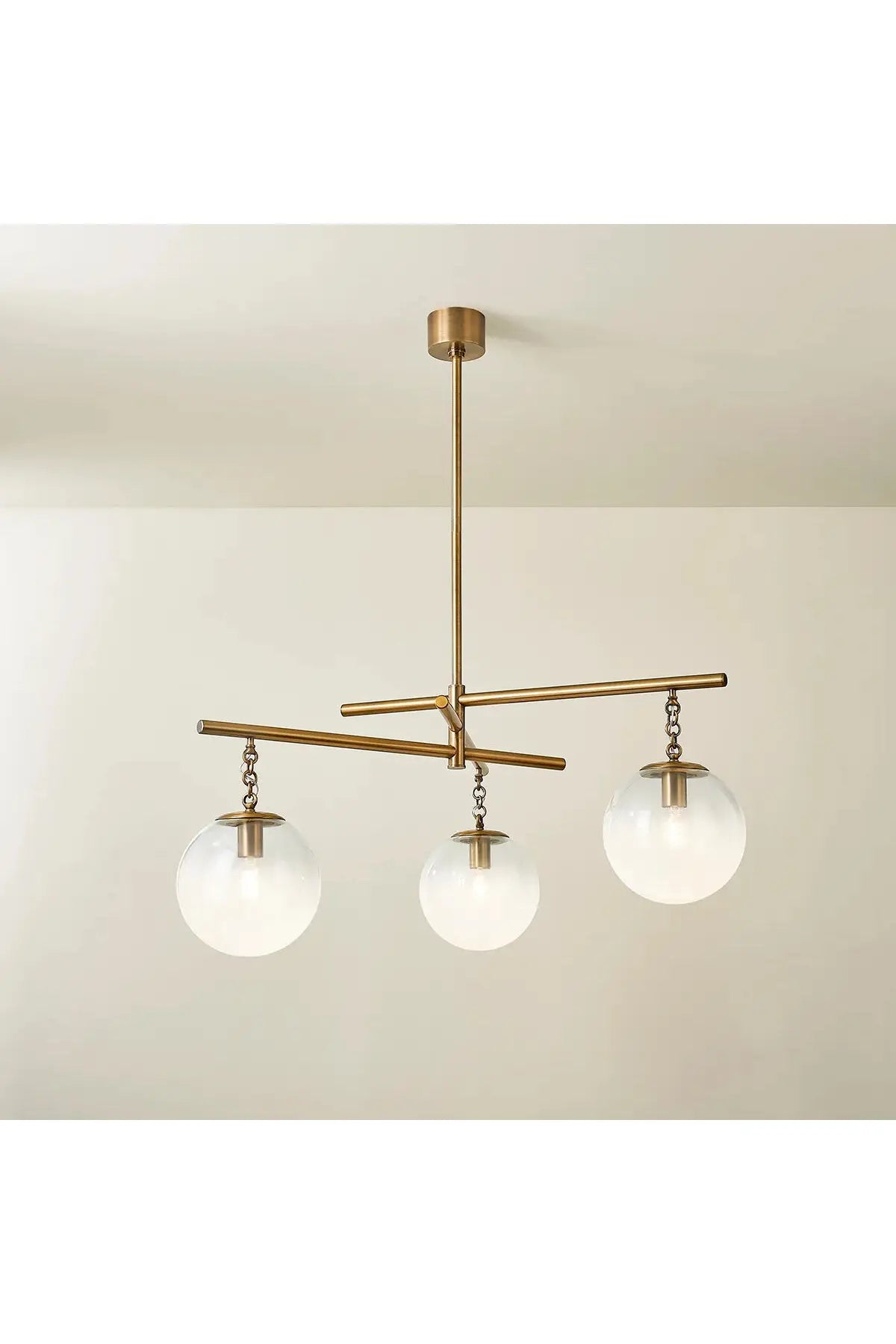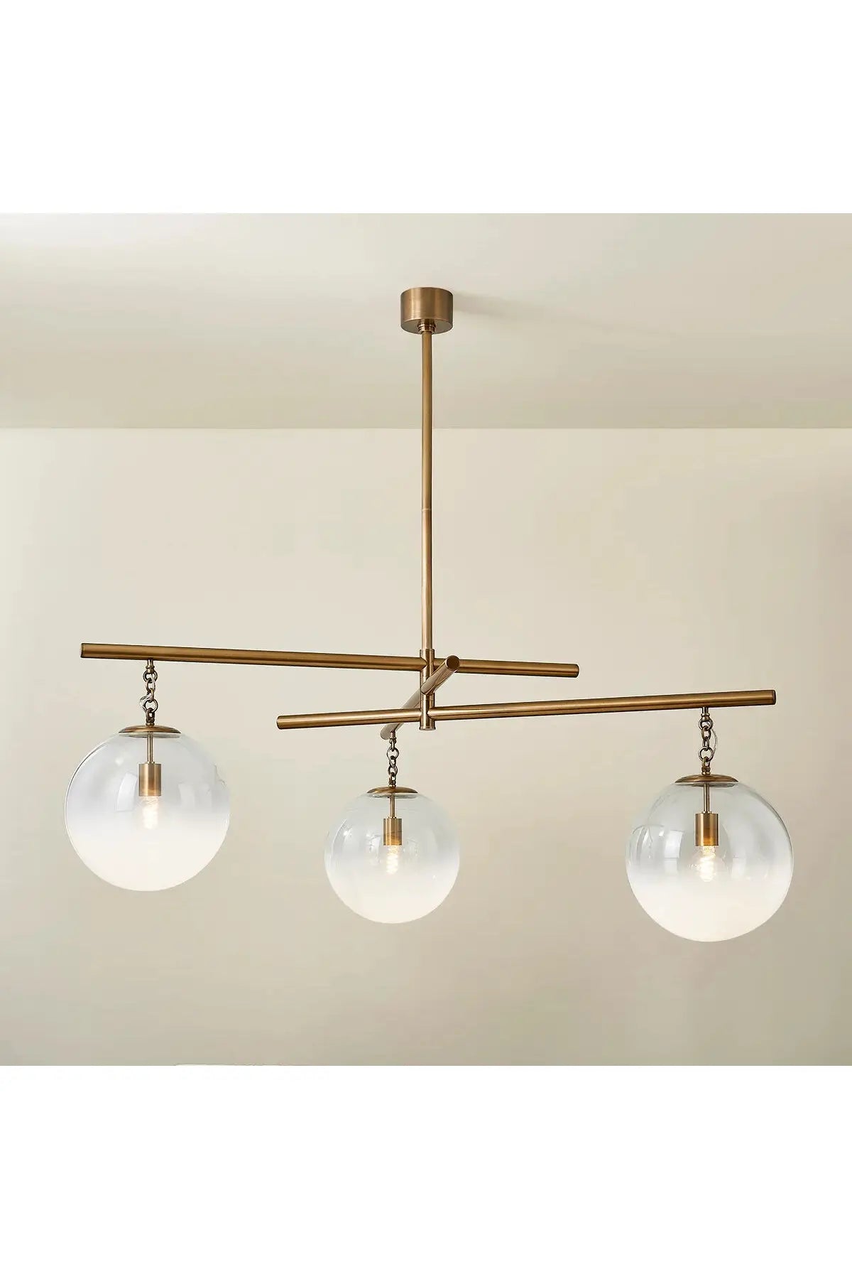 Inspired by the cosmos, the Wade Chandelier features large Sfumato glass spheres that orbit the mobile-like structure. A substantial jewelry-like chain and artful geometry add to the design of this chandelier. Available in two sizes in a Brass finish, the Wade introduces a moment of contemplation to modern spaces. Bulb(s) not included.