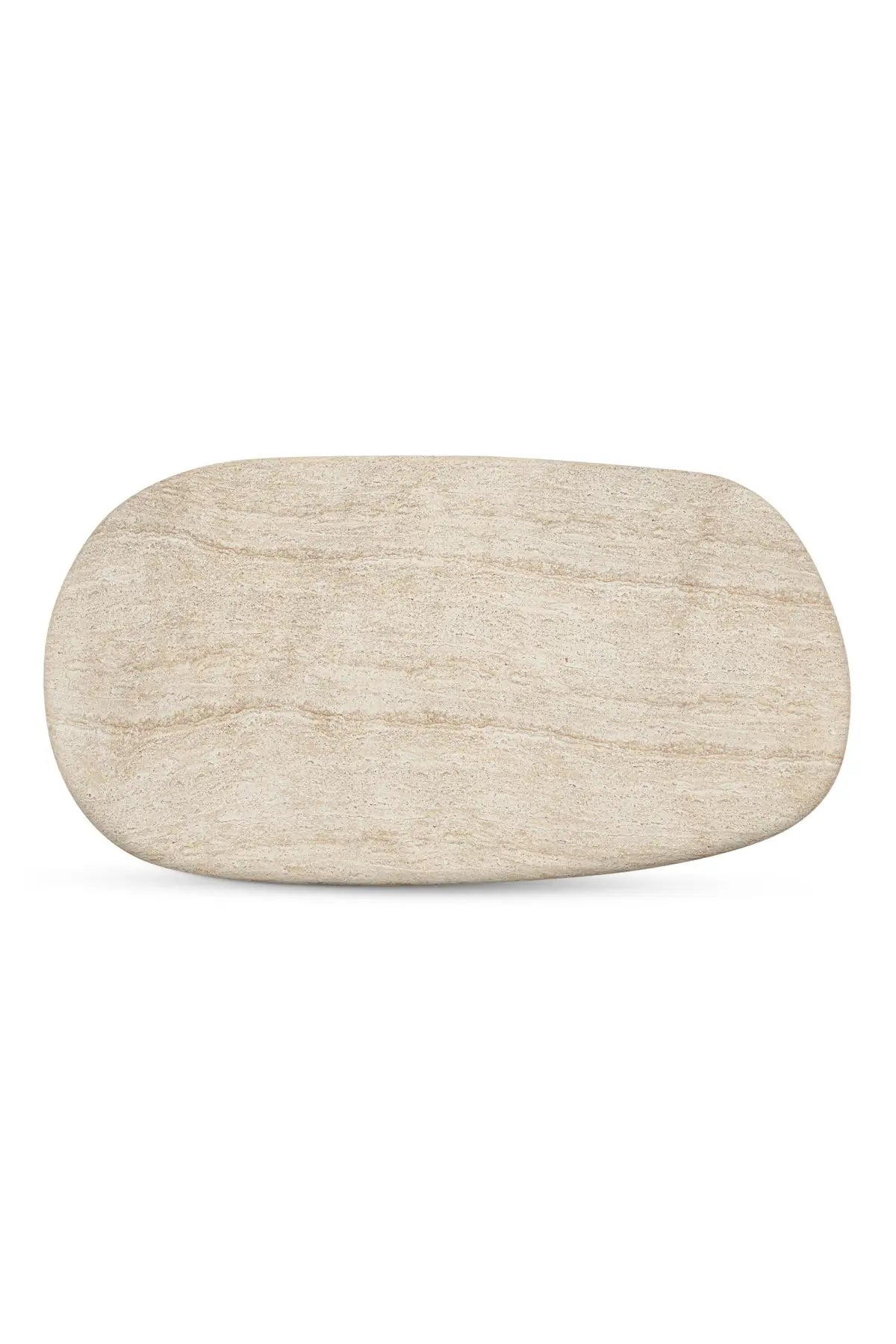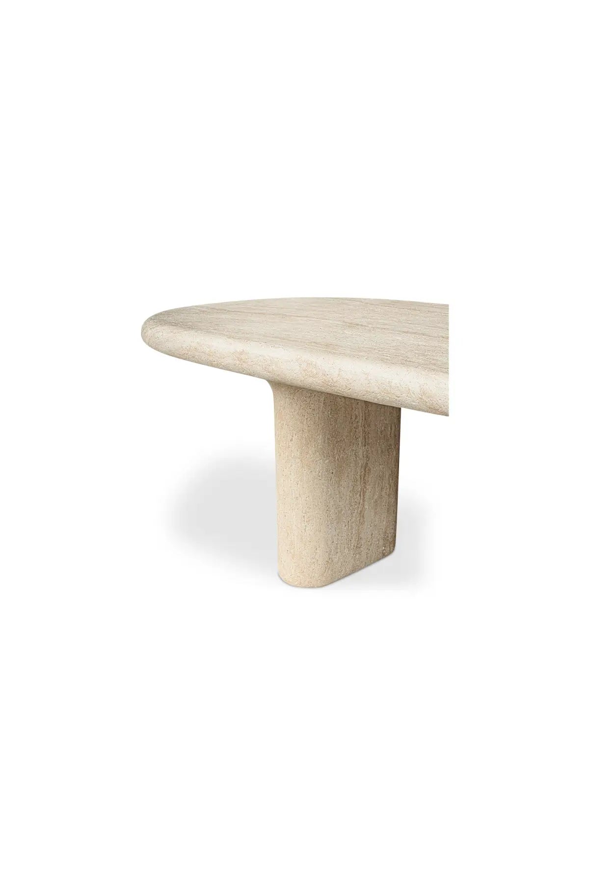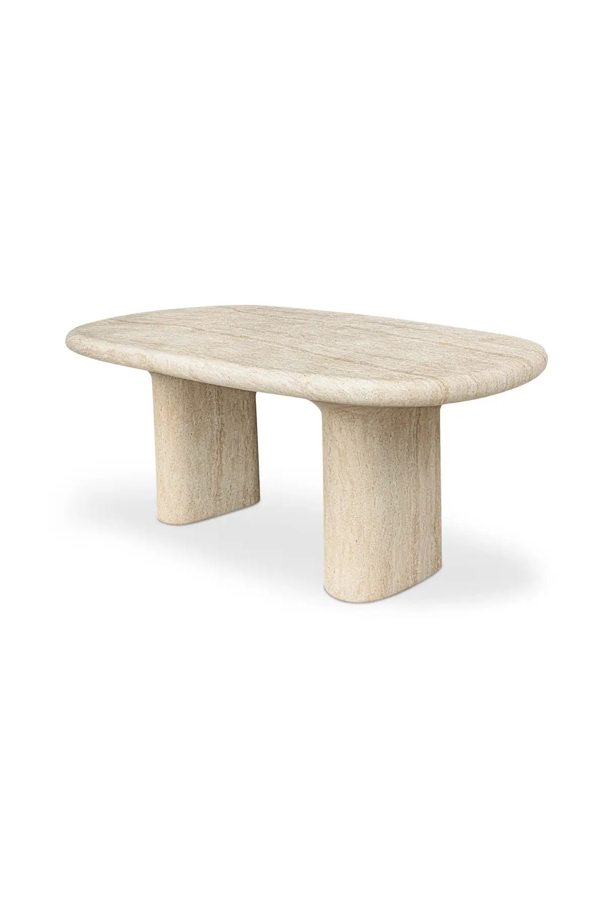 The Warby Outdoor Dining Table is designed with a sense of playfulness and organic form and crafted through an innovative water transfer process that patterns onto concrete to give the sophisticated appearance of travertine.