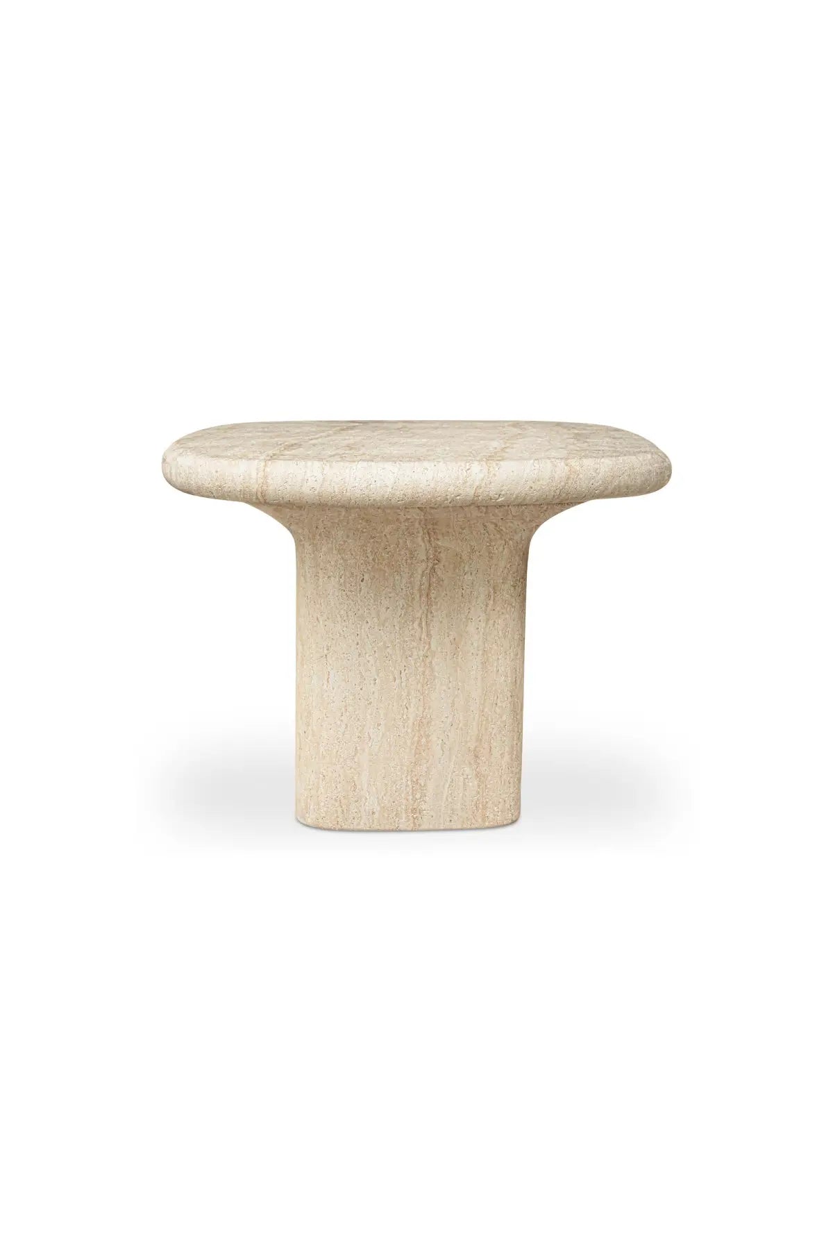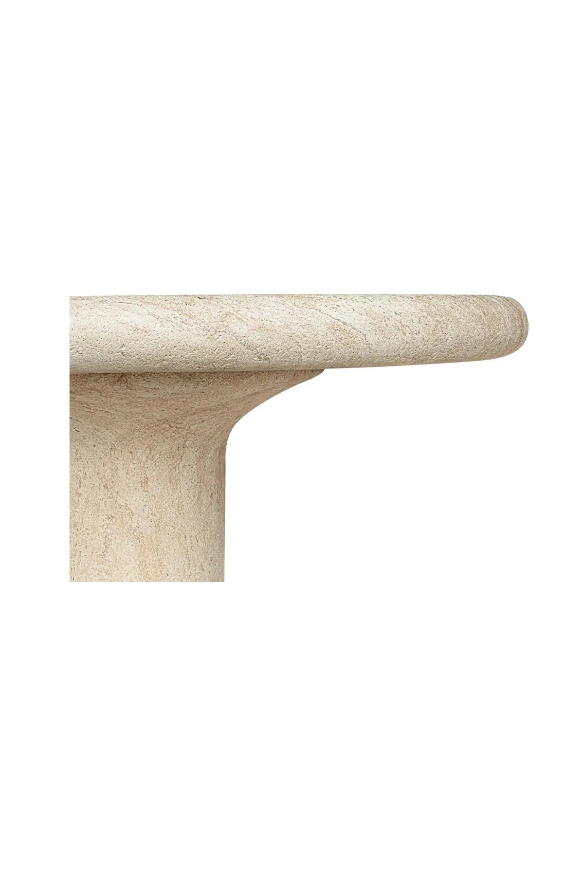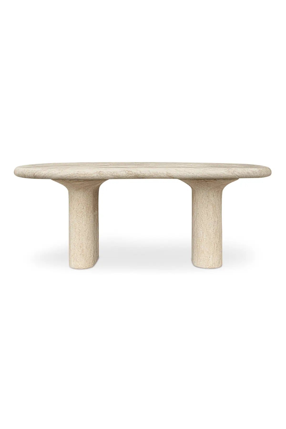The Warby Outdoor Dining Table is designed with a sense of playfulness and organic form and crafted through an innovative water transfer process that patterns onto concrete to give the sophisticated appearance of travertine.