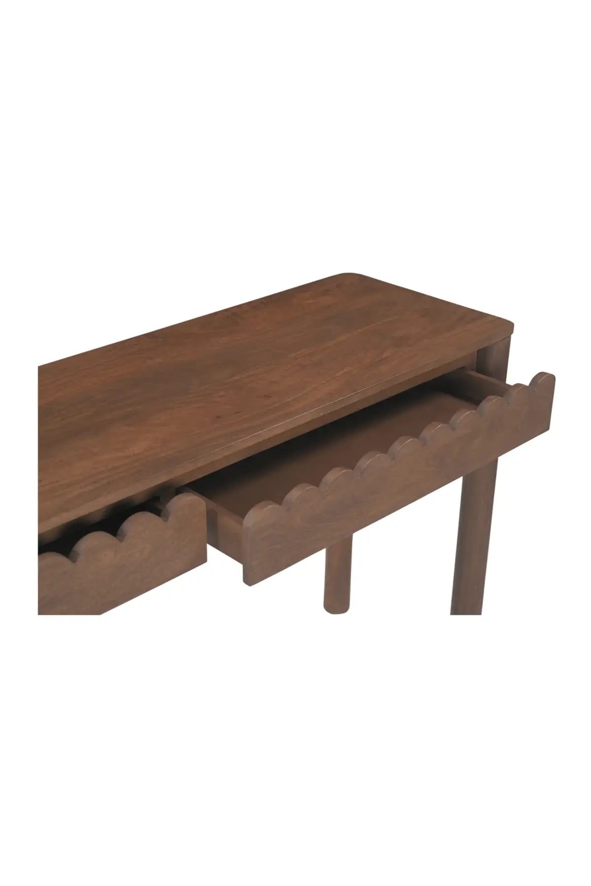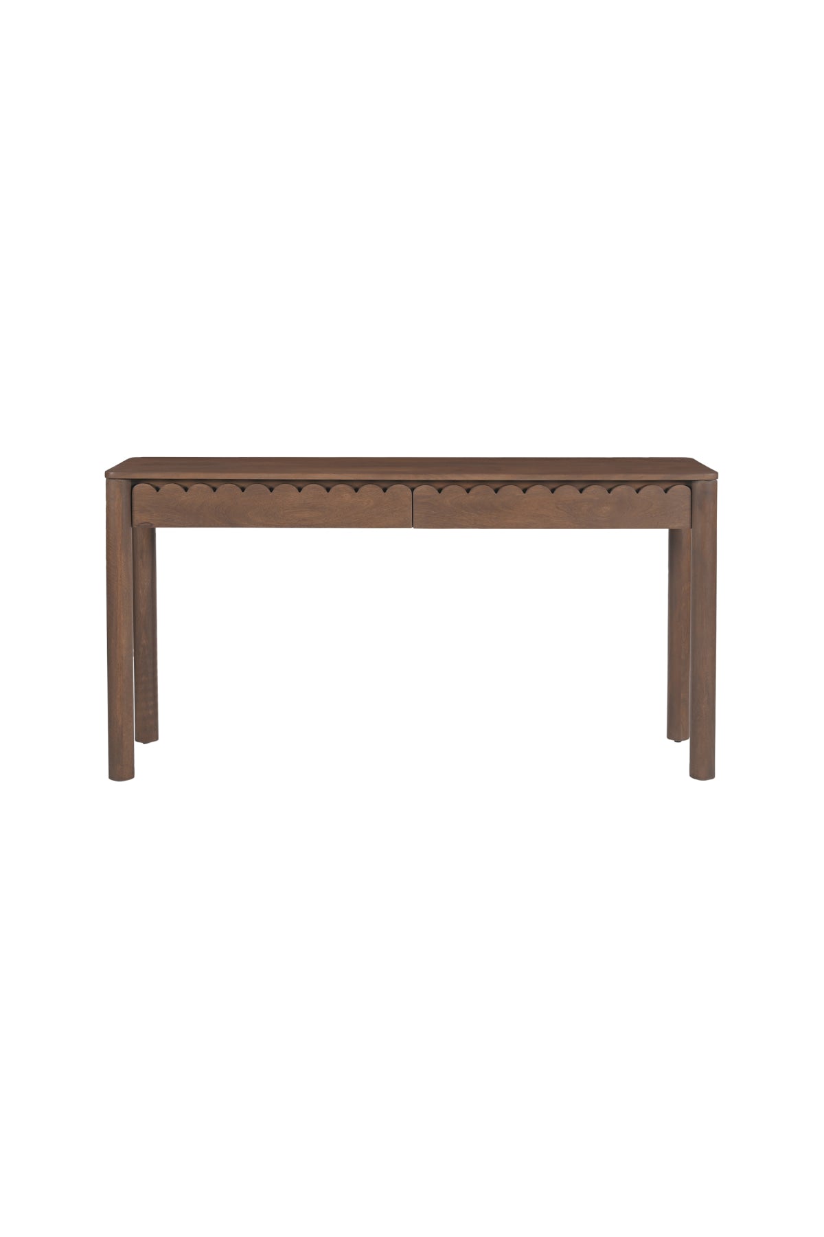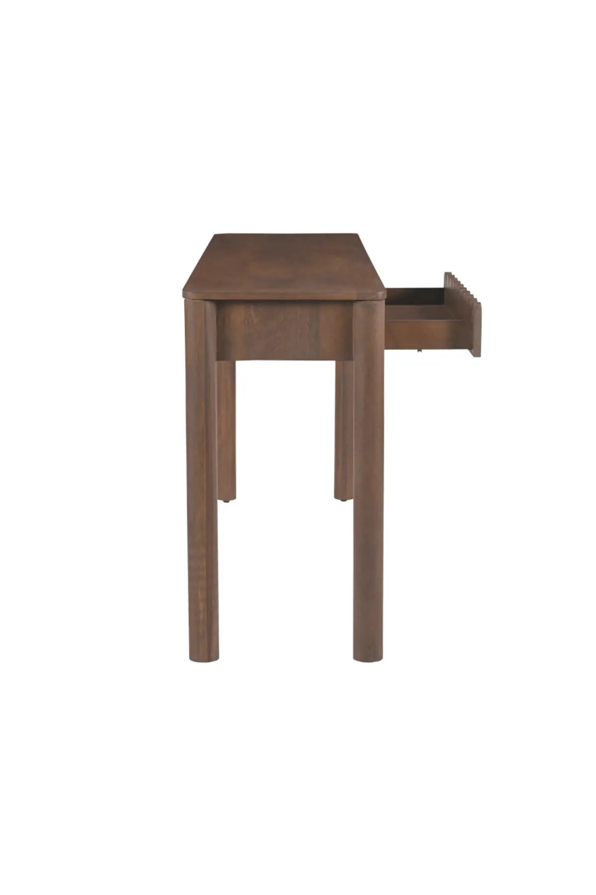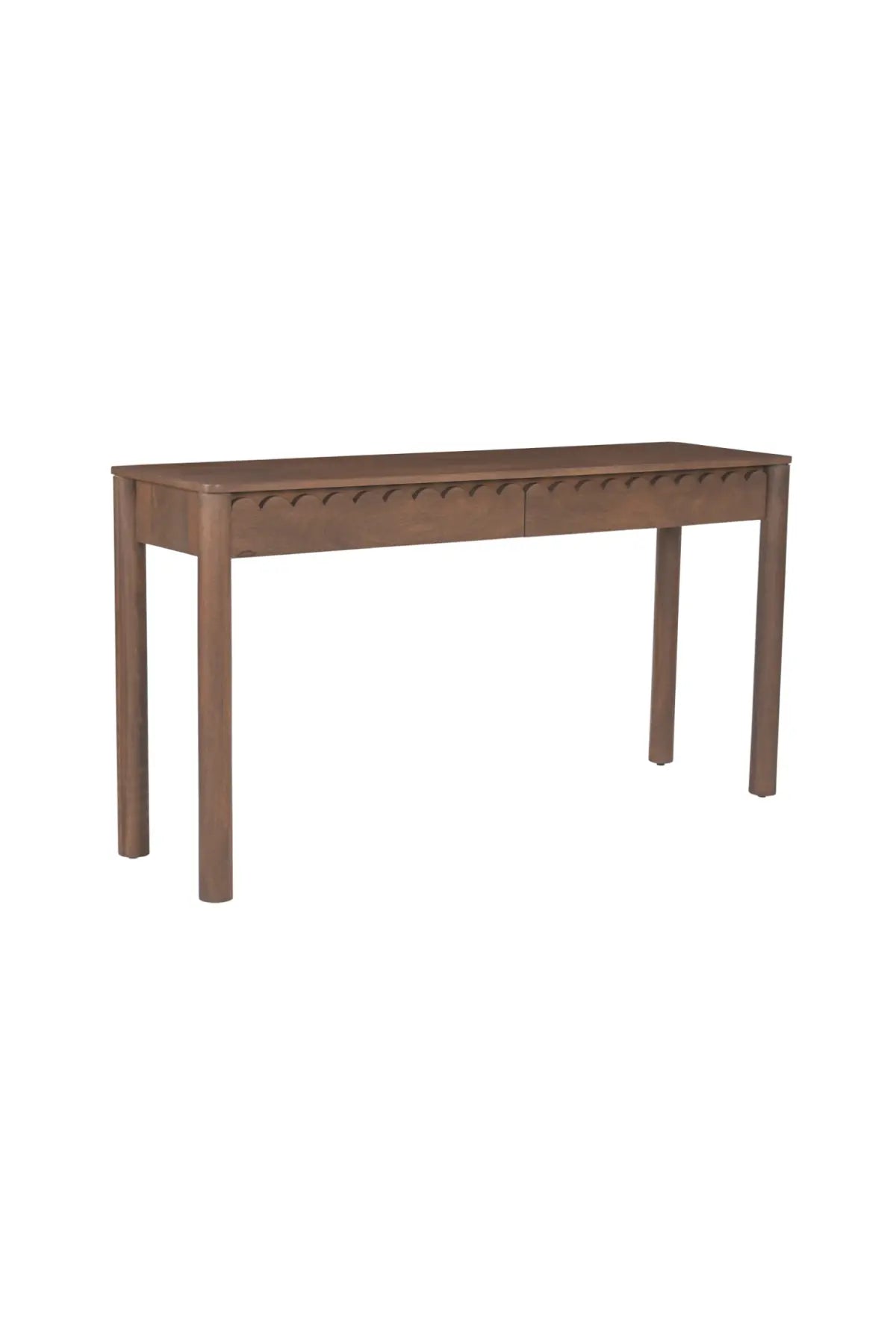 Meet the Wiley Console Table. Meticulously crafted, its elegant form is defined by sleek, geometric curves that add a captivating touch of modernity. The post legs stand as pillars of strength, grounding the console table with their understated presence.