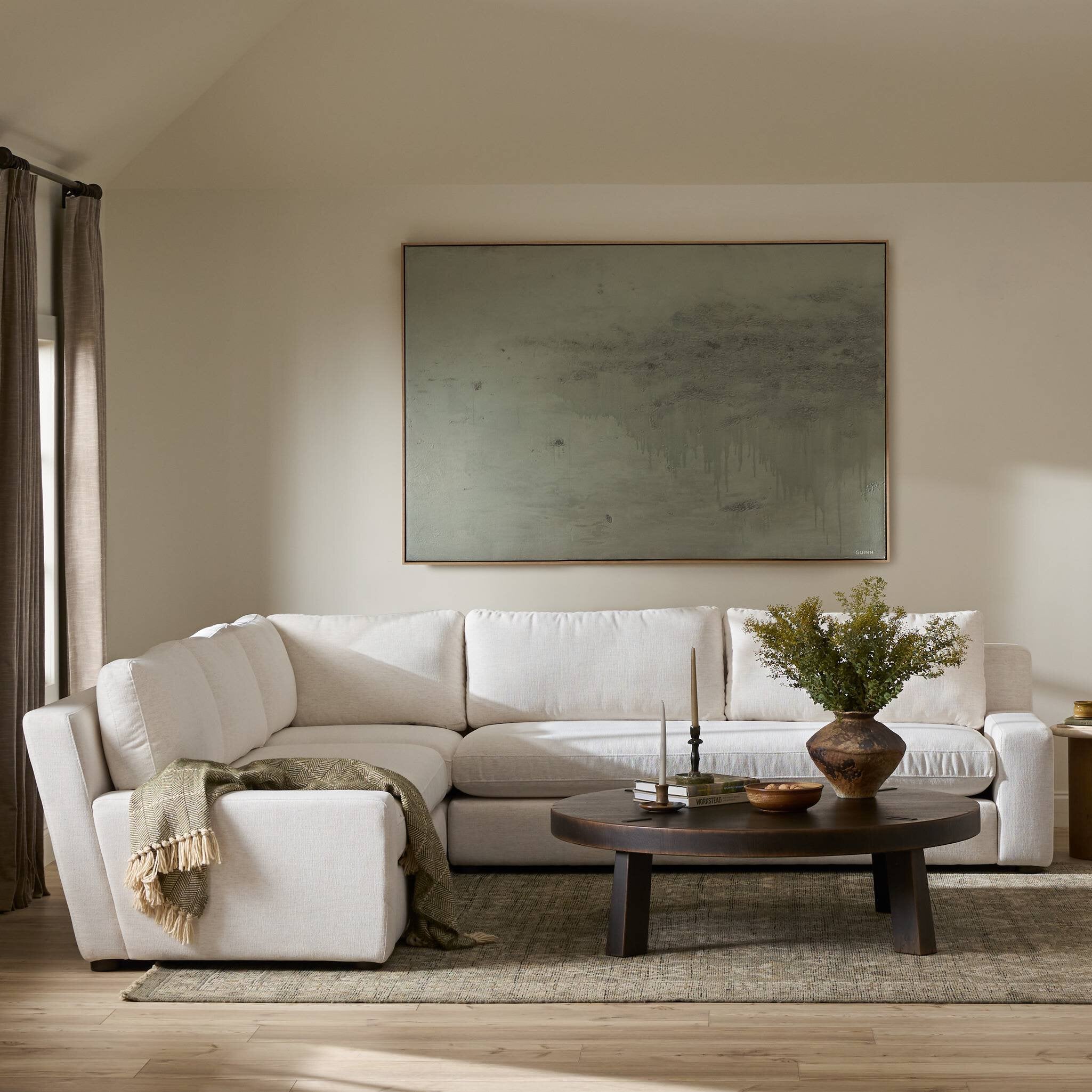 Meet the Yelena 3-Piece Sectional. Add a touch of modern sophistication to your space with the streamlined silhouette and dramatic side profile of this track arm sectional. Subtle tapering along the side adds visual interest, while the bench-style seating invites relaxation. Extra plush foam cushions and S-spring suspension ensure lasting comfort. Crypton® performance fabric is specially engineered for protection against stains, moisture and odor.