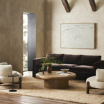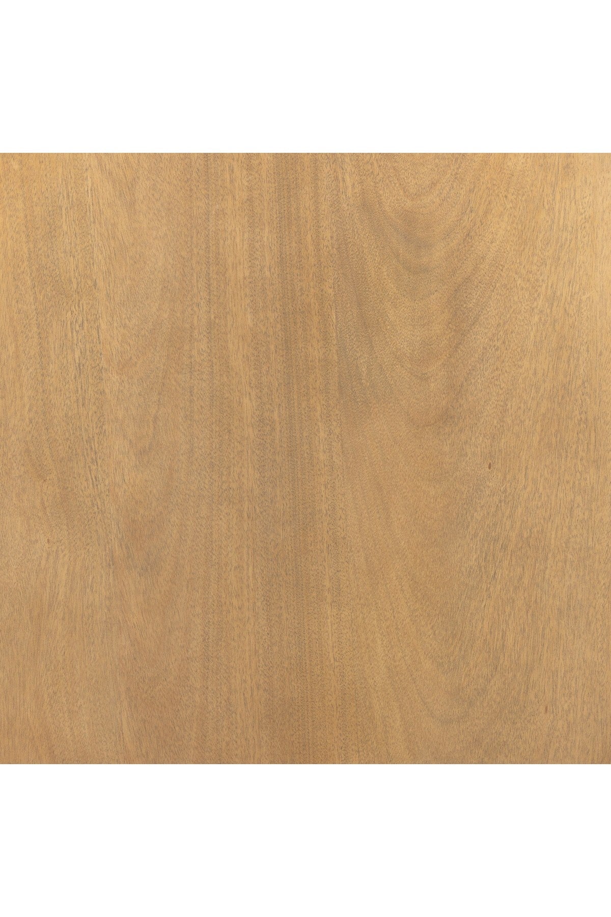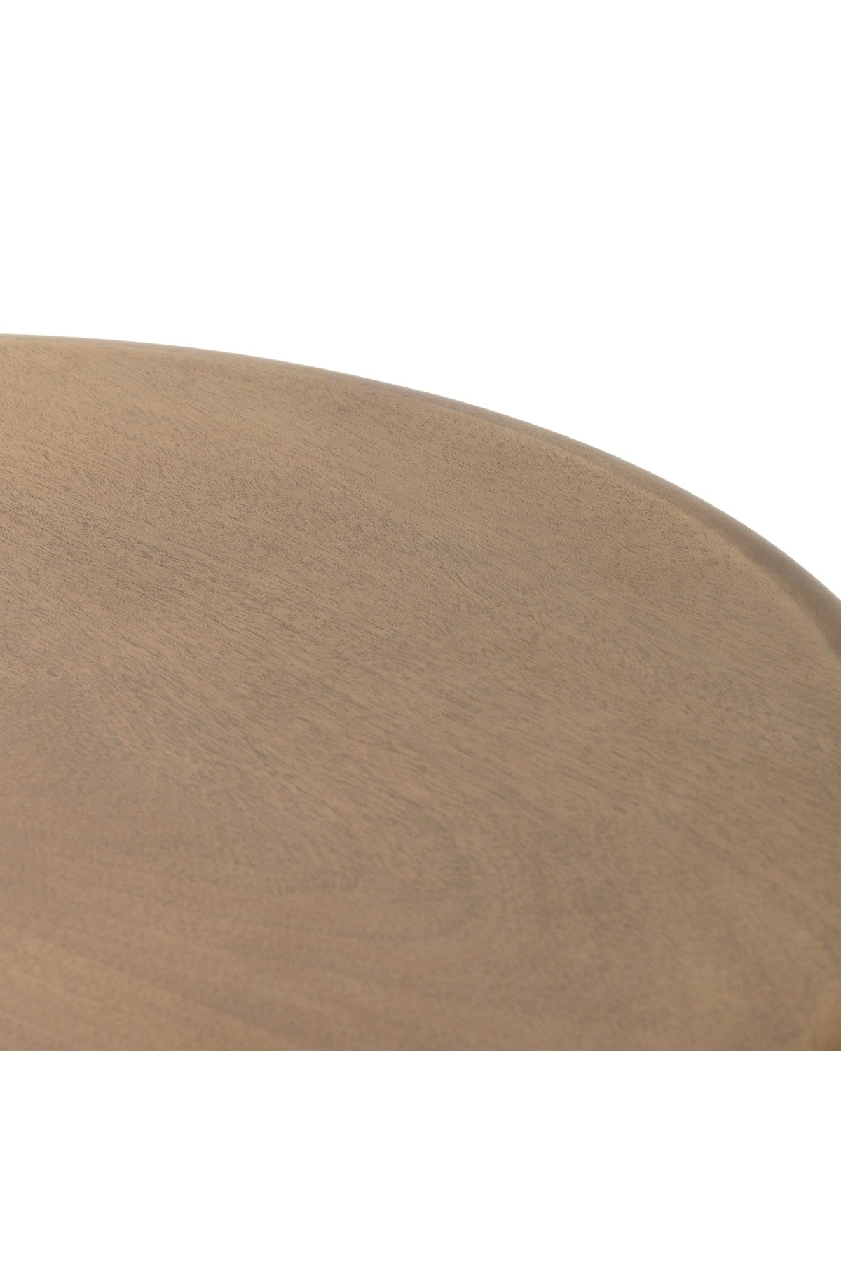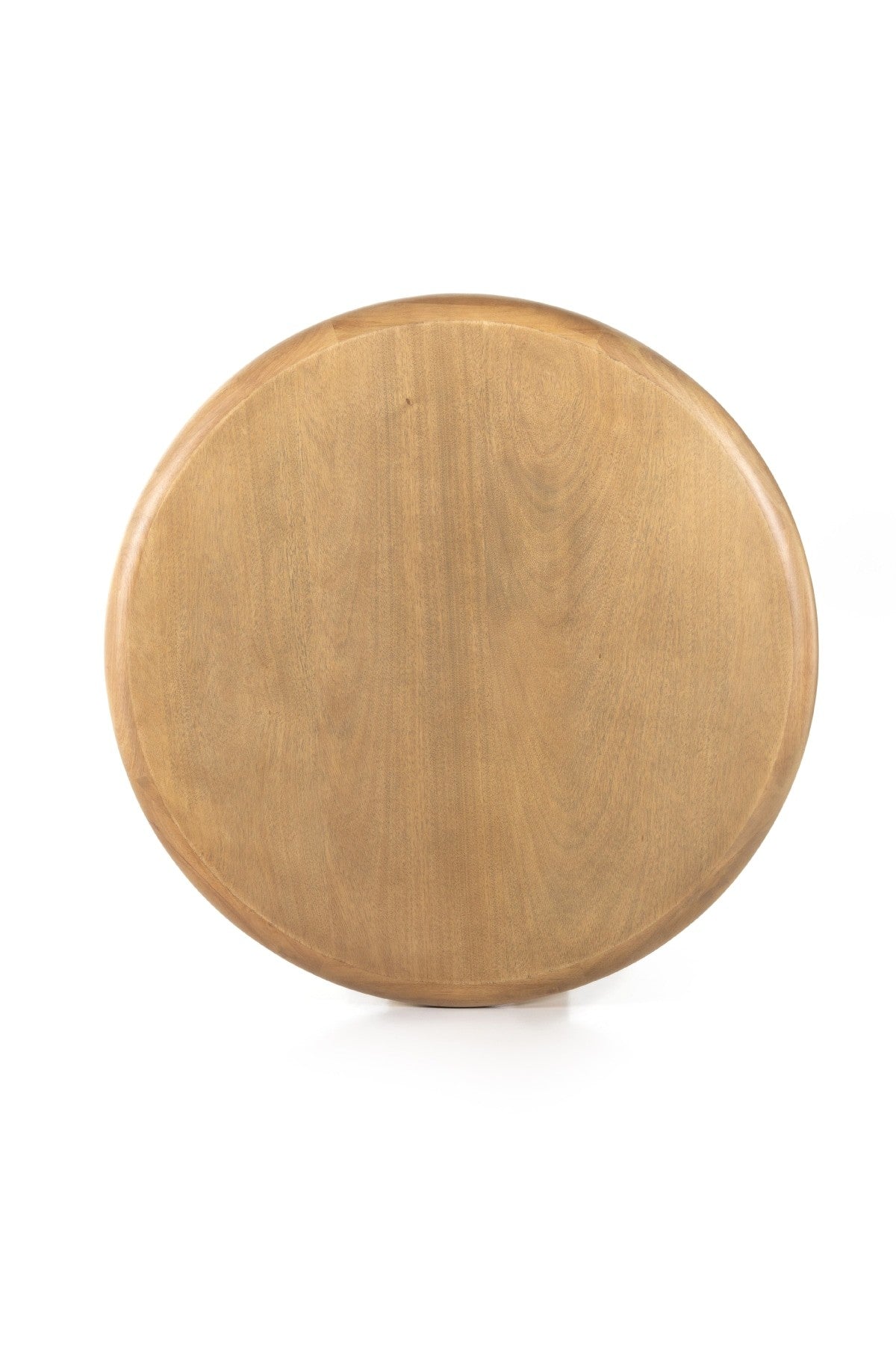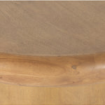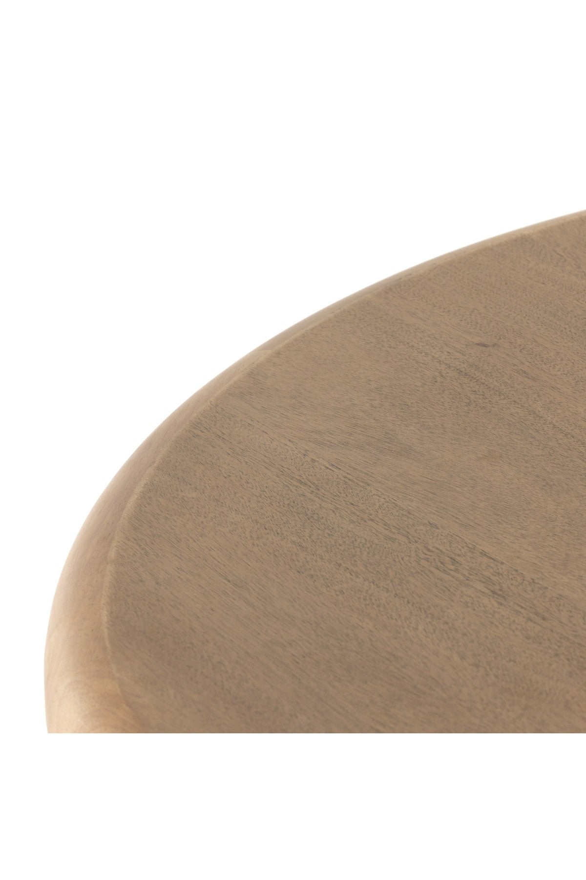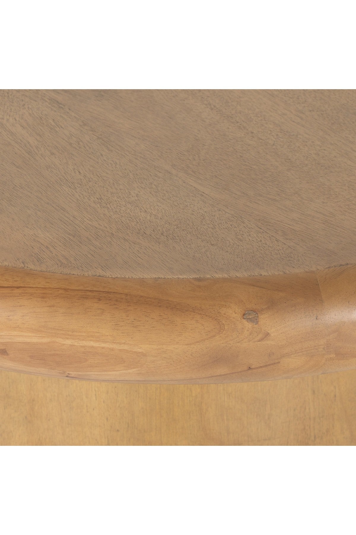 Meet the Zach Coffee Table in Natural. A pedestal-style base of solid burnished parawood supports a rounded tabletop with bullnose edging, for style and softness alike.