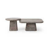 Meet the Zane Coffee Table Set. Ground your living space with a coffee table set — one larger square and one smaller round — made from grey-finished marble. With thoughtful design touches like bullnose edging around tray-style tops, tables' detailing crafts an elevated artisan look that's sure to spark conversation.