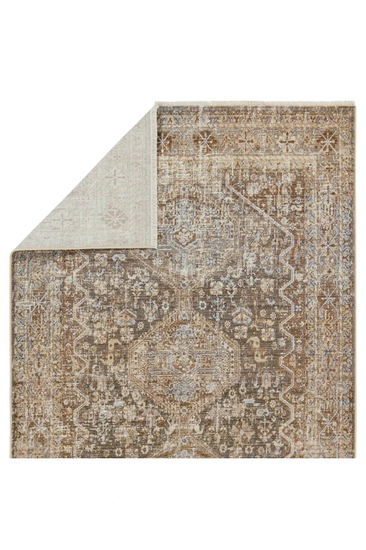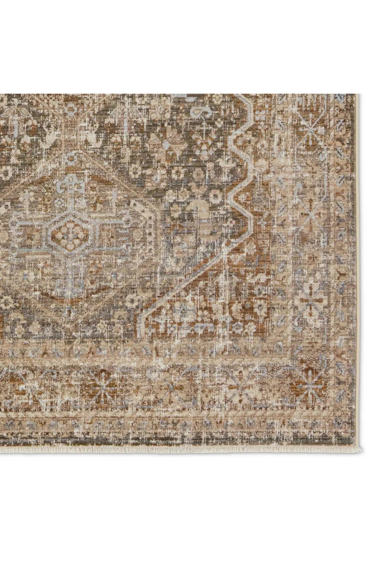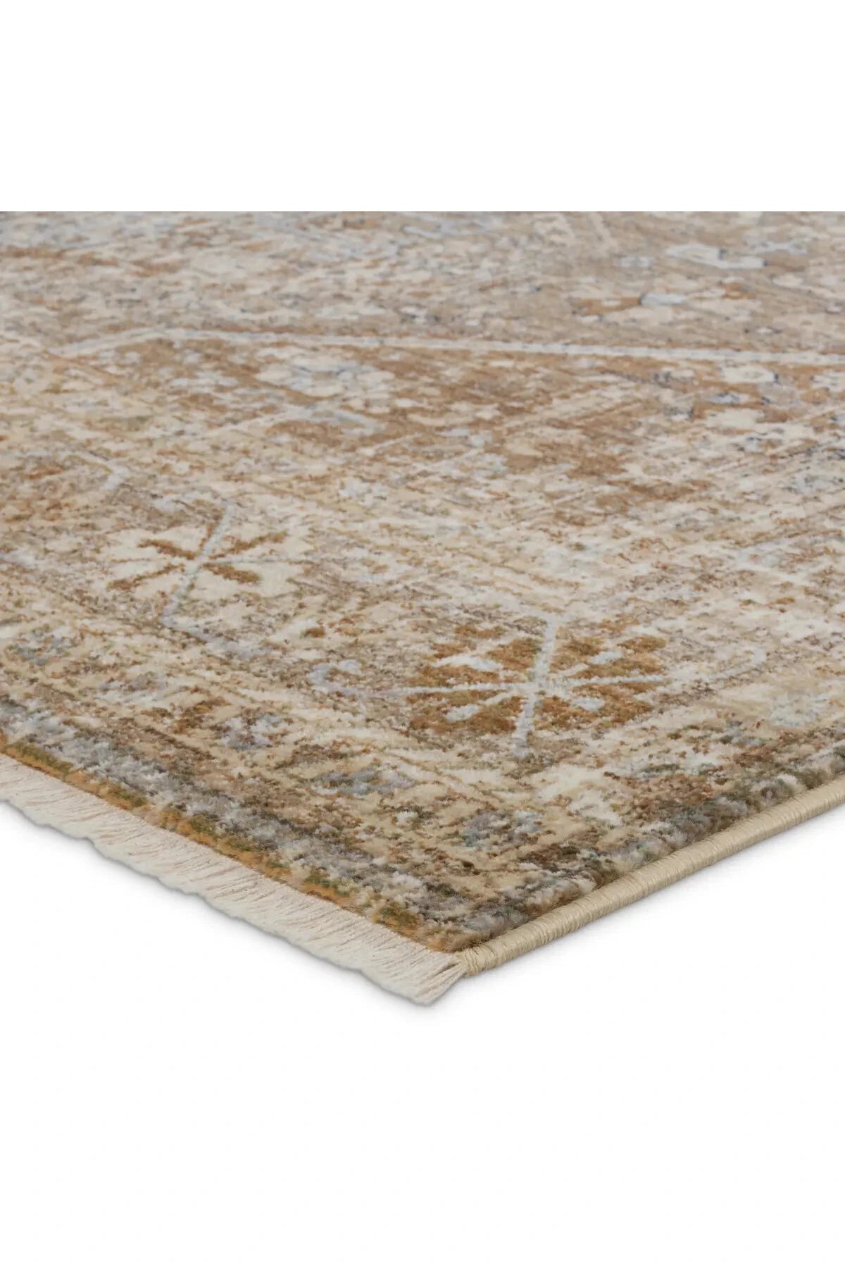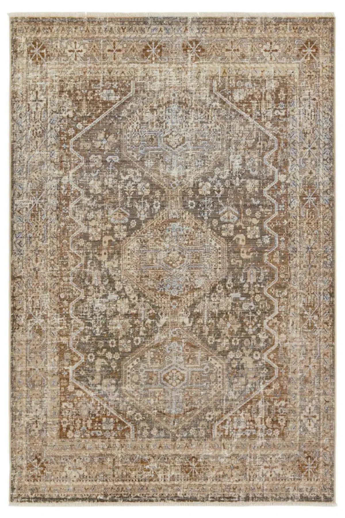 Inspired by the vintage perfection of sun-bathed Turkish designs, the Zefira Rug showcases detailed traditional motifs that have been updated with on-trend, saturated colorways. The rug boasts a distressed medallion motif in warm tones of tan, taupe, caramel, blue, and green. This power-loomed rug features cotton fringe detailing, a natural result of weft yarns, that echoes hand-knotted construction and adds brilliant texture to the plush, durable polypropylene pile.