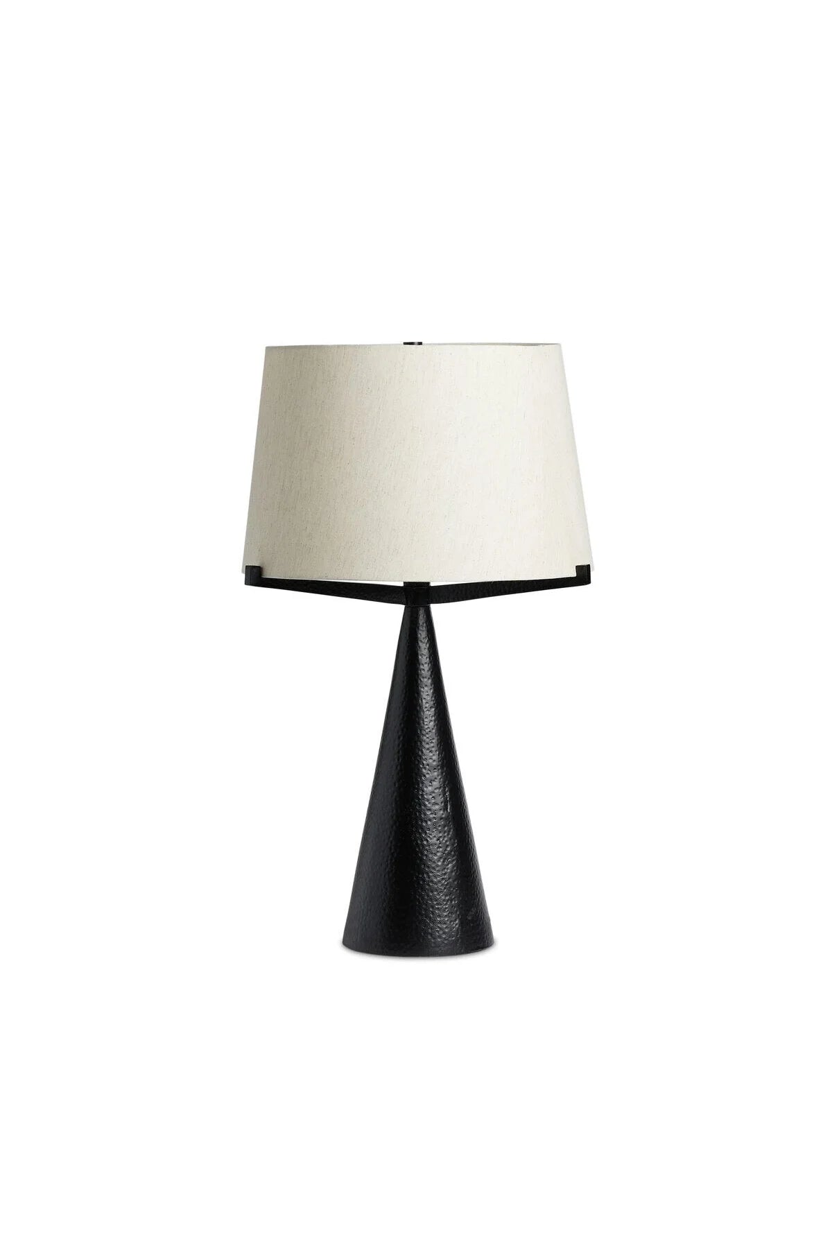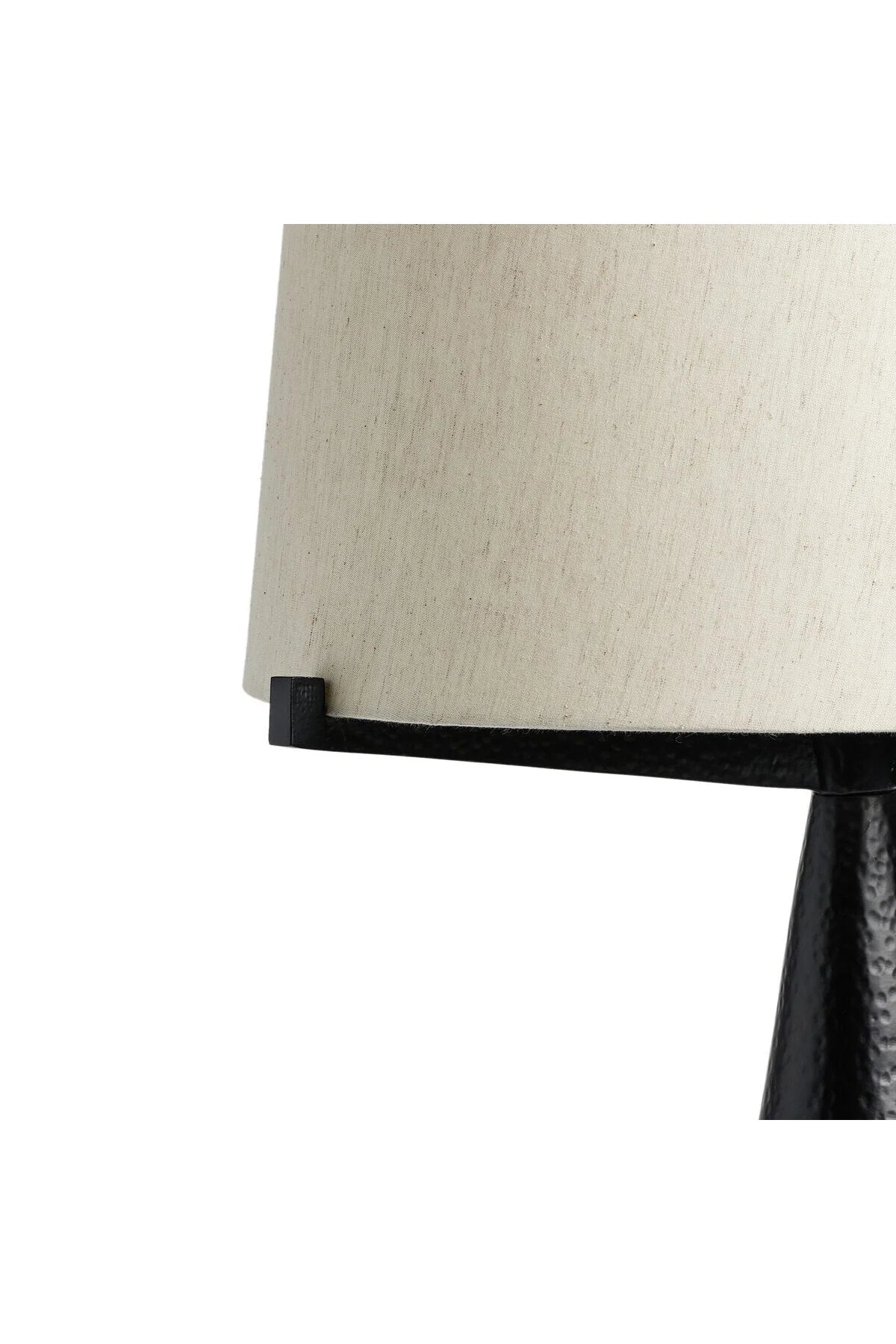 Meet the Ziggy Table Lamp. A tapered silhouette in black, hand-hammered aluminum gives this architectural table lamp its textured shape. A beige cotton shade adds a casual look with contrast.