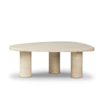 Meet the Zion Nesting Coffee Table. Shape and material share the spotlight in this tripod-style coffee table of solid, cream-colored marble. With turned, pillar legs and dramatic natural veining.