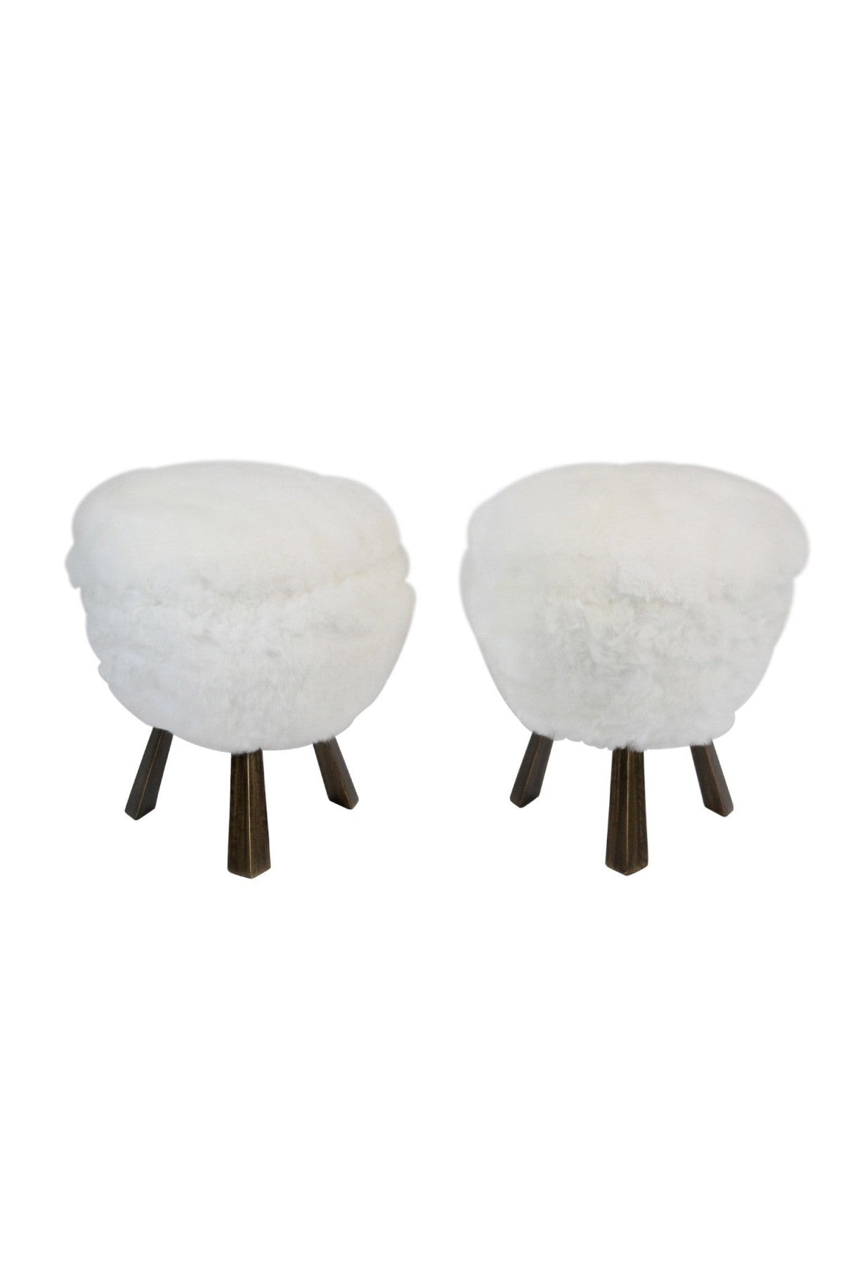 Meet the Zoe Accent Stools. This is a versatile small stool that can be placed in any room style. The metal base is hand-finished in antique gold. The cover is made of 100% pure baby alpaca natural fur. A truly unique piece that mixes metallics and natural elements.